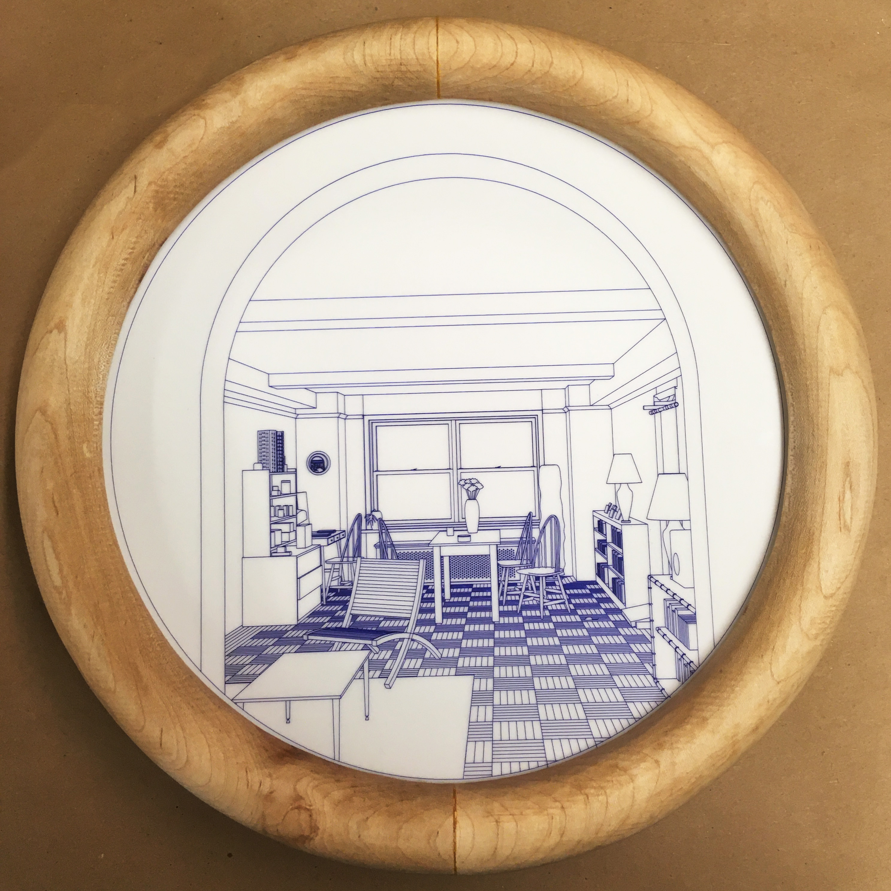 A lamp based on a room hung in that room.